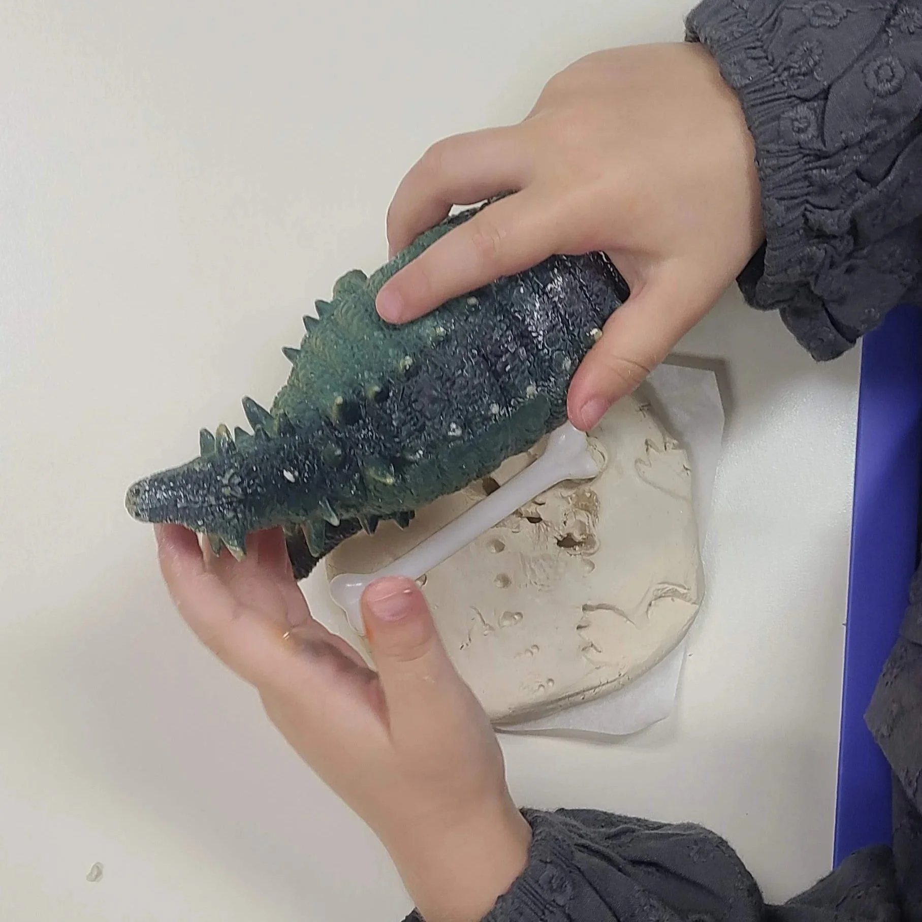 This recipe creates a safe, tactile material that’s perfect for molding, pressing, and crumbling—just like real fossil excavation!